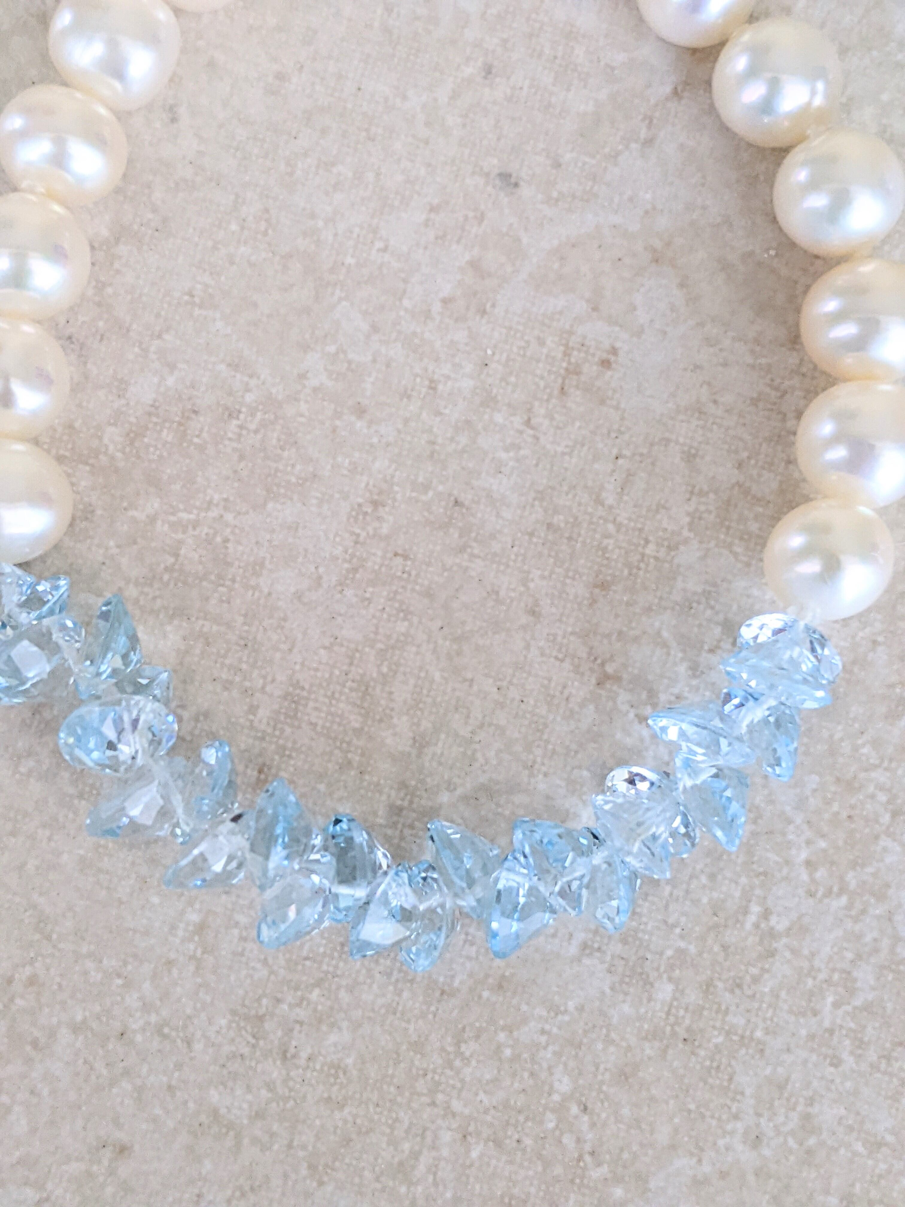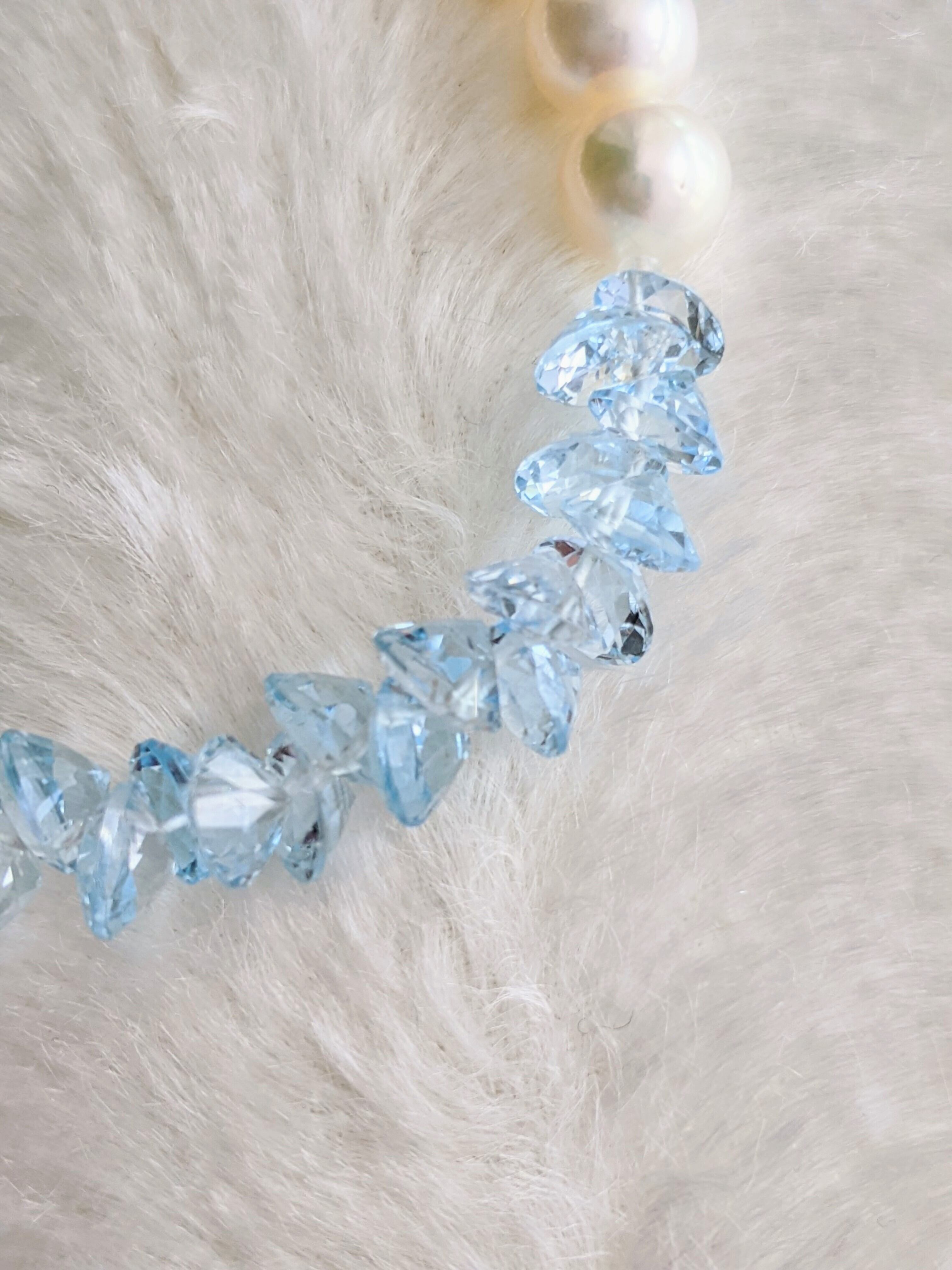 blue topaz&fresh water pearl braceletブルートパーズ淡水真珠ブレスレット