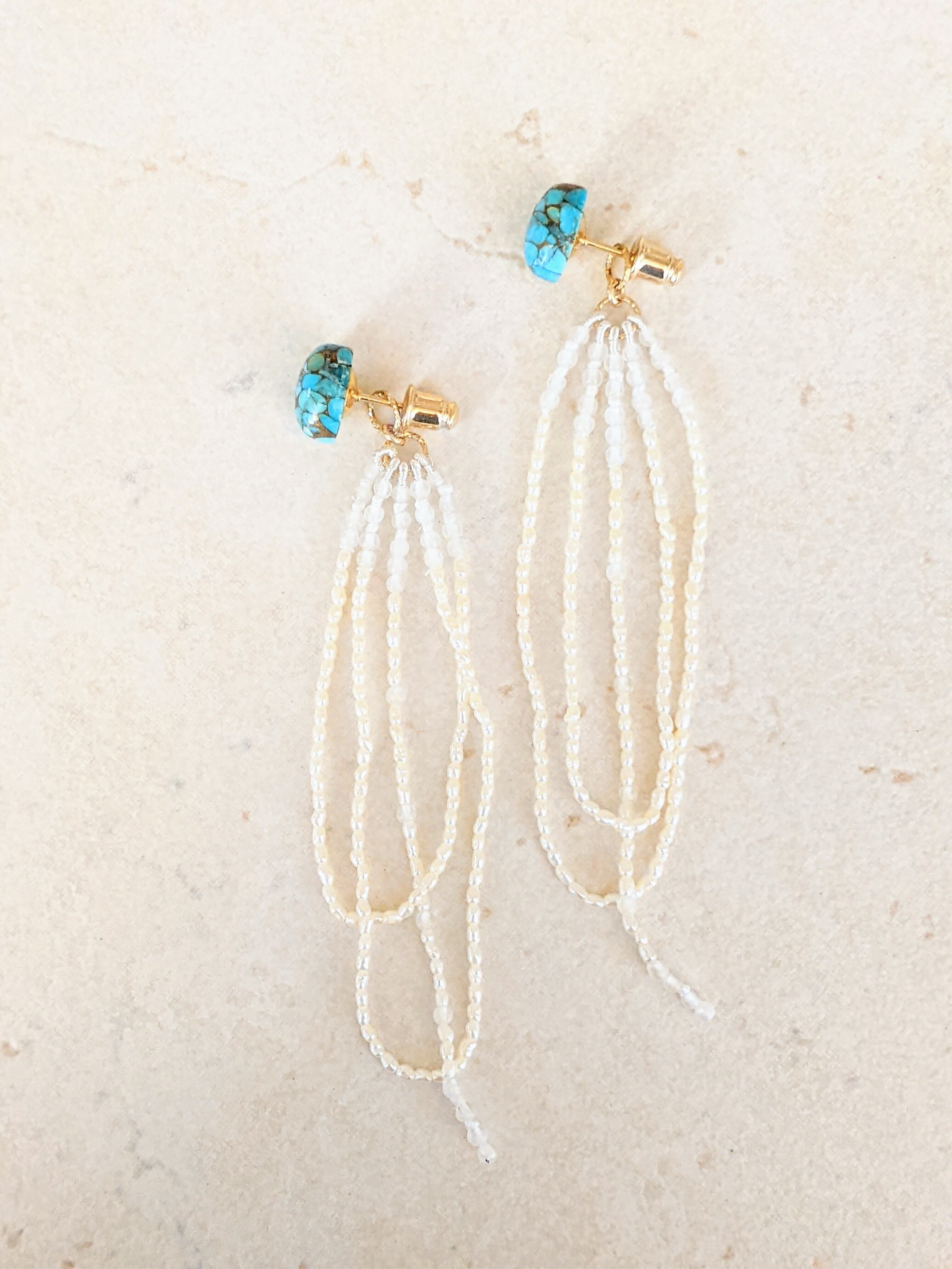 turquoise✧fresh water pearl keshi k18天然石ブルーカッパーターコイズ✧淡水真珠ケシピアス