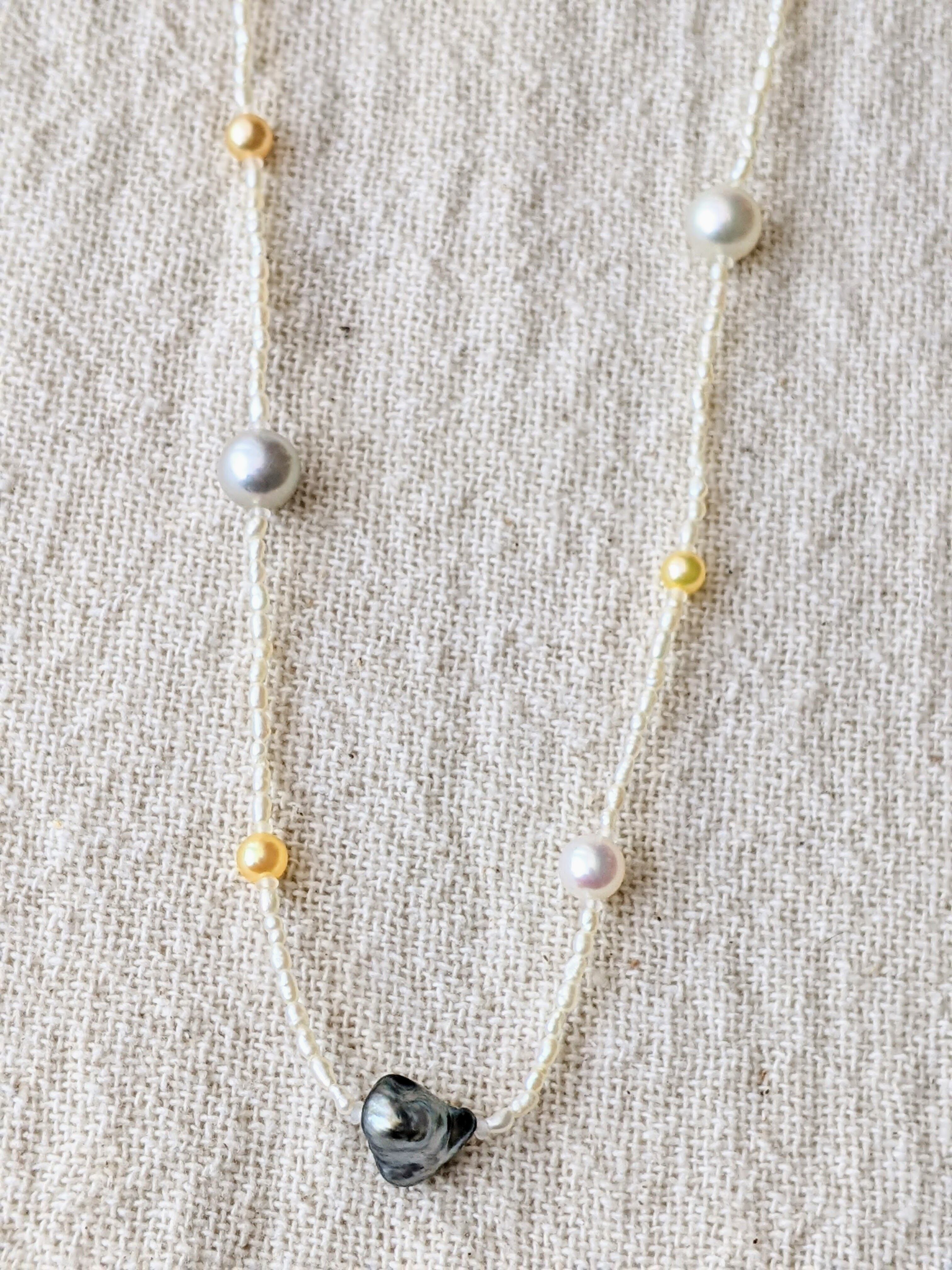 ✧タヒチ産 黒蝶真珠 無核ケシ✧淡水真珠1.5mmケシnecklace