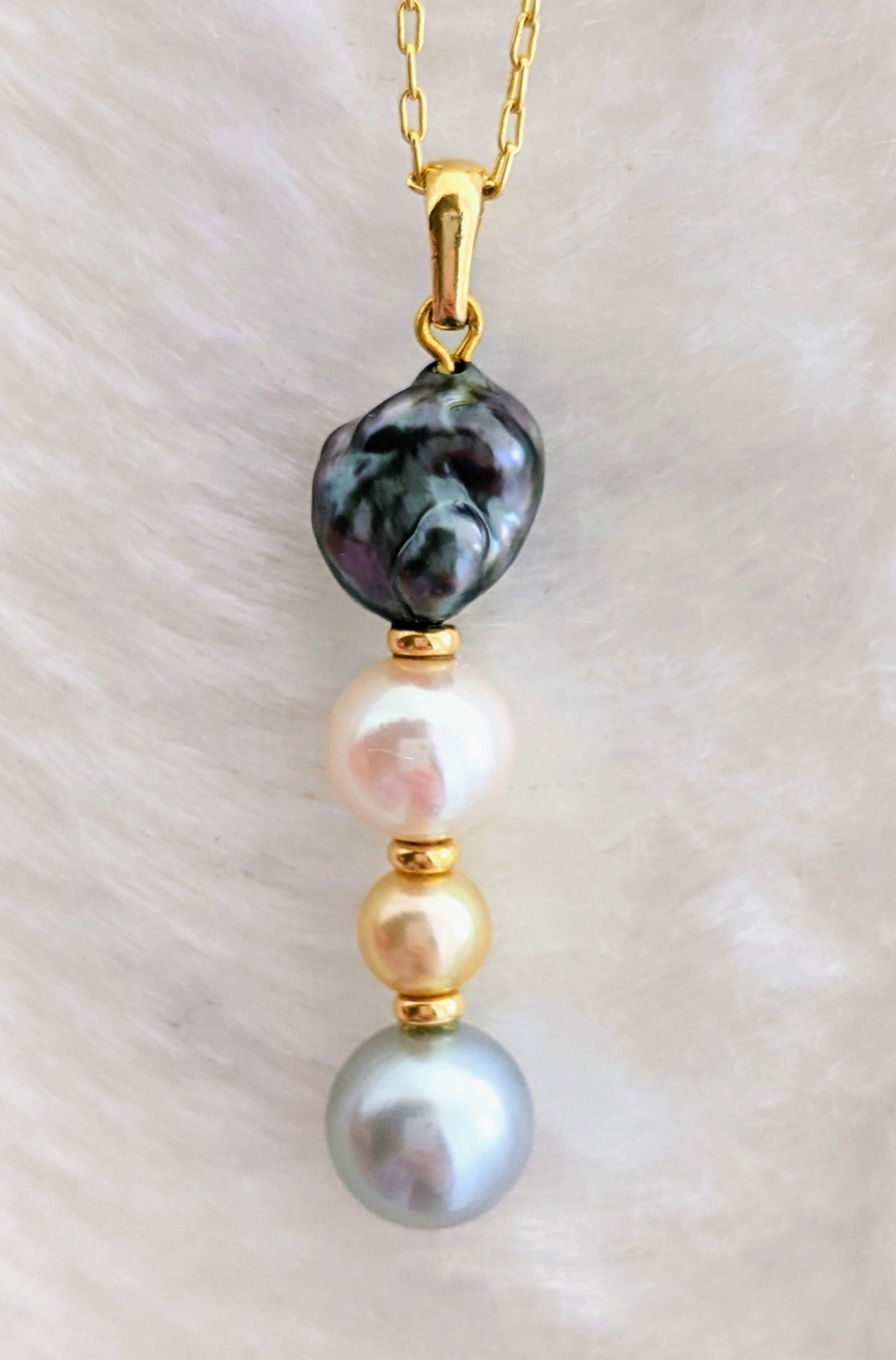 tahitian keshi&akoya 黒蝶ケシ あこや真珠 pentop k18
