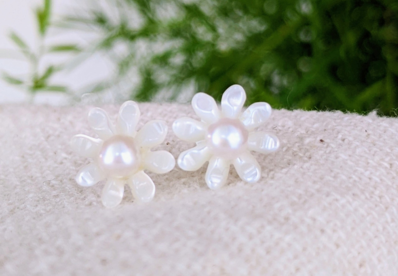 white shell pierce✧earring 白蝶貝 シェル 淡水真珠 ピアス✧イヤリング