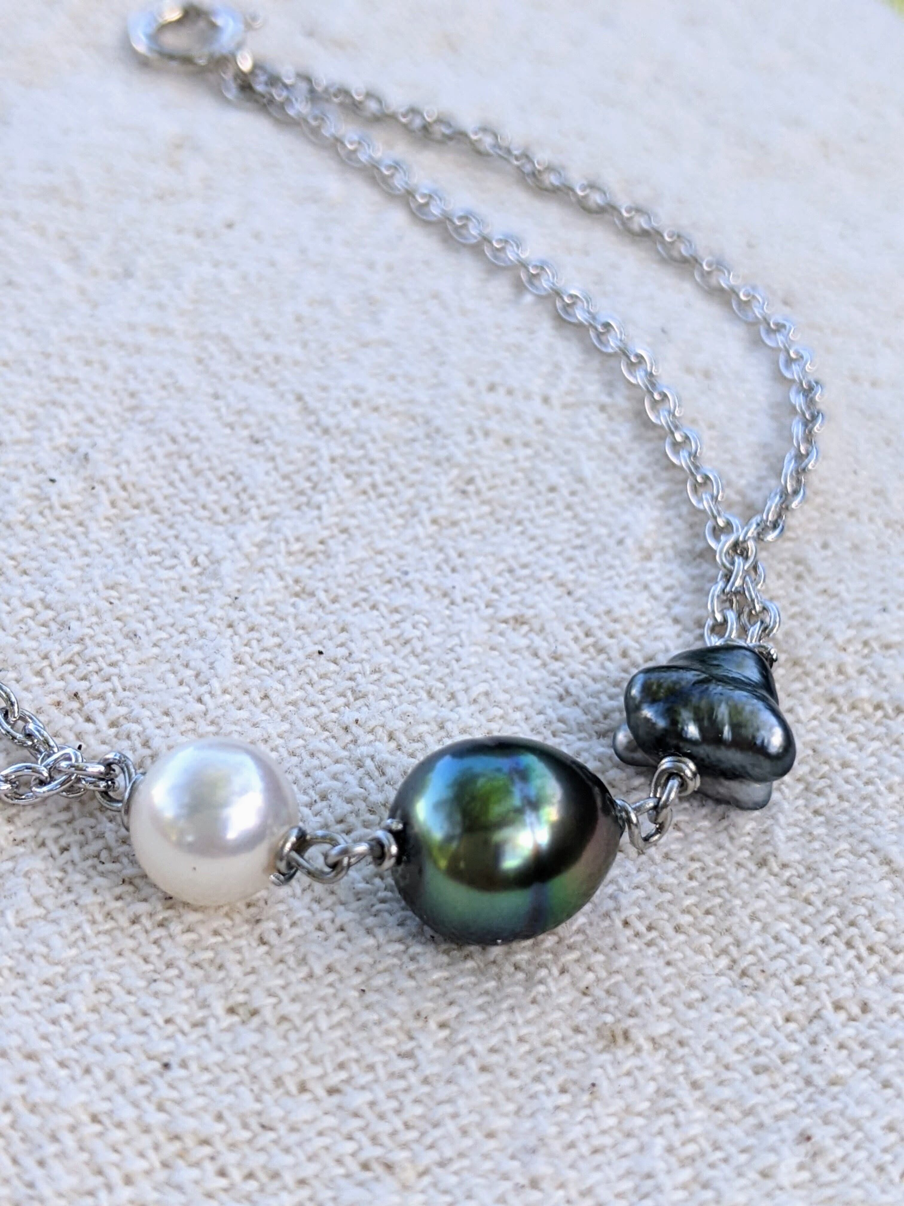 tahitian black✧akoya✧SV925 黒蝶 あこや真珠ブレスレット